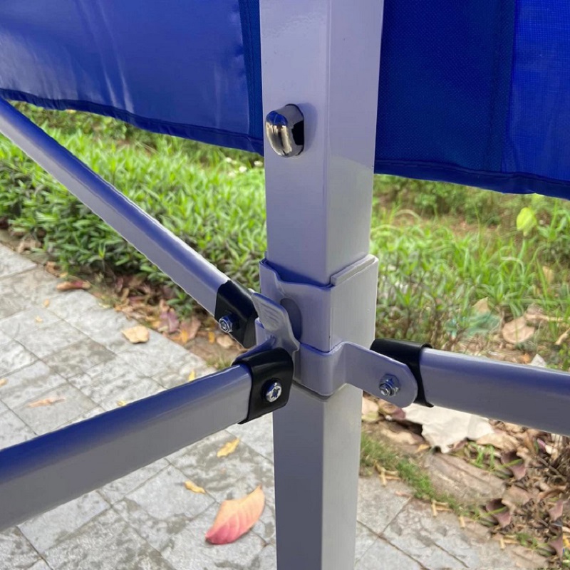 - Chất liệu: khung bằng thép sơn tĩnh điện, mái che vải bạt polyester 800D tráng PVC chống thấm