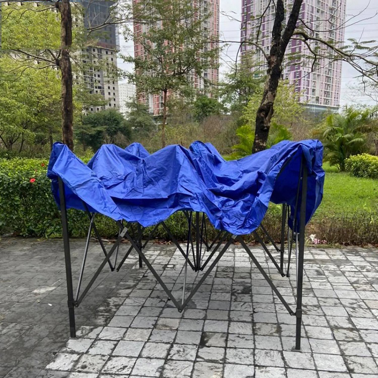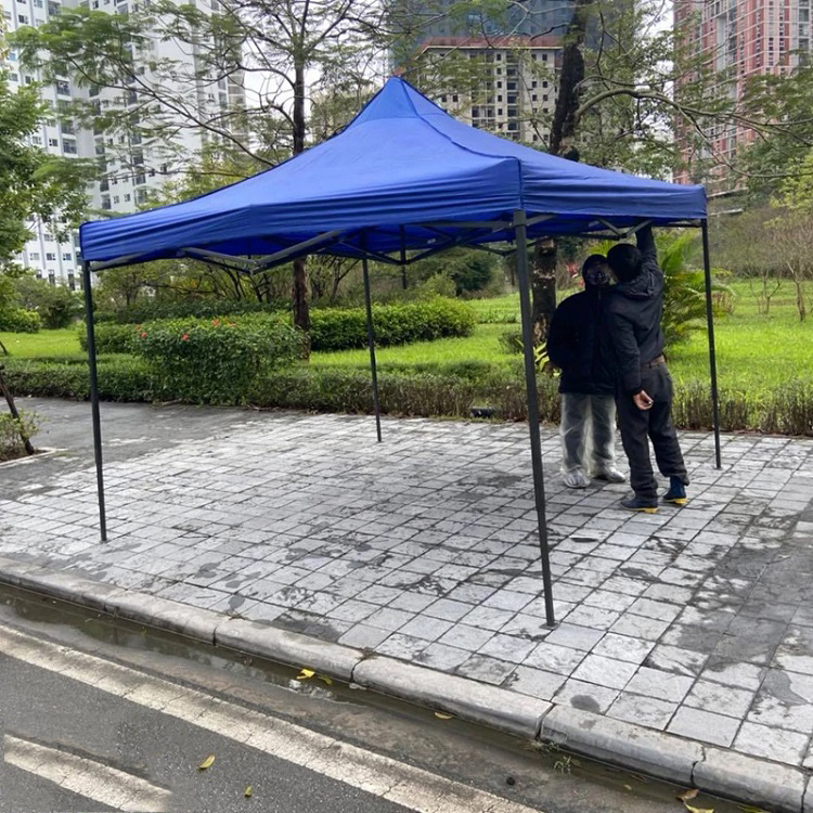 - Chất liệu: khung bằng thép sơn tĩnh điện, mái che vải bạt polyester 420D tráng PVC chống thấm